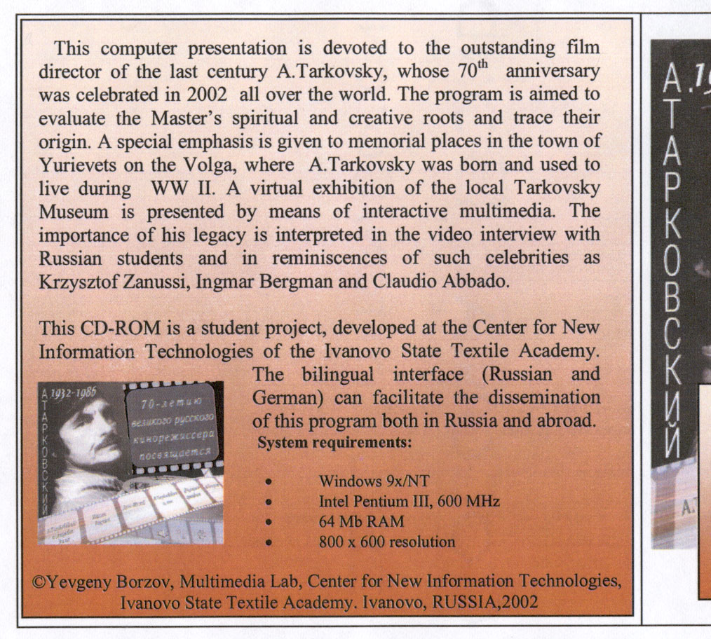 Tarkovsky 70th Anniversary Multimedia Presentation